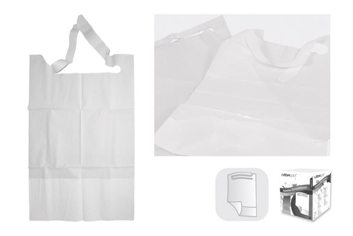 Avental descartável branco em plástico com embalagem