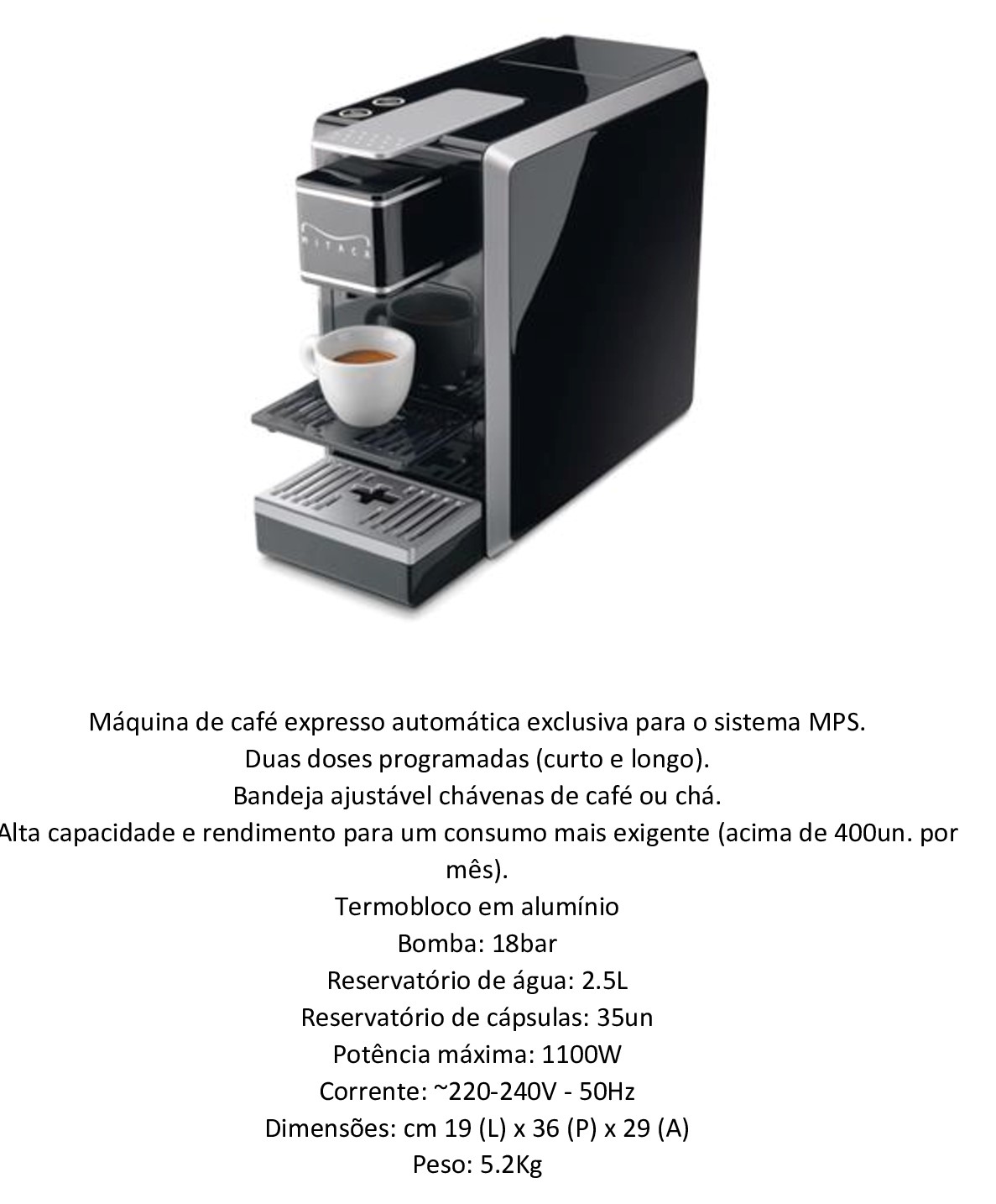 • Máquina Café Cápsulas MPS Expresso Mitaca M9 Preto