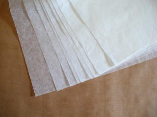 Folhas finas, transparentes e empilhadas sobre superfície castanha